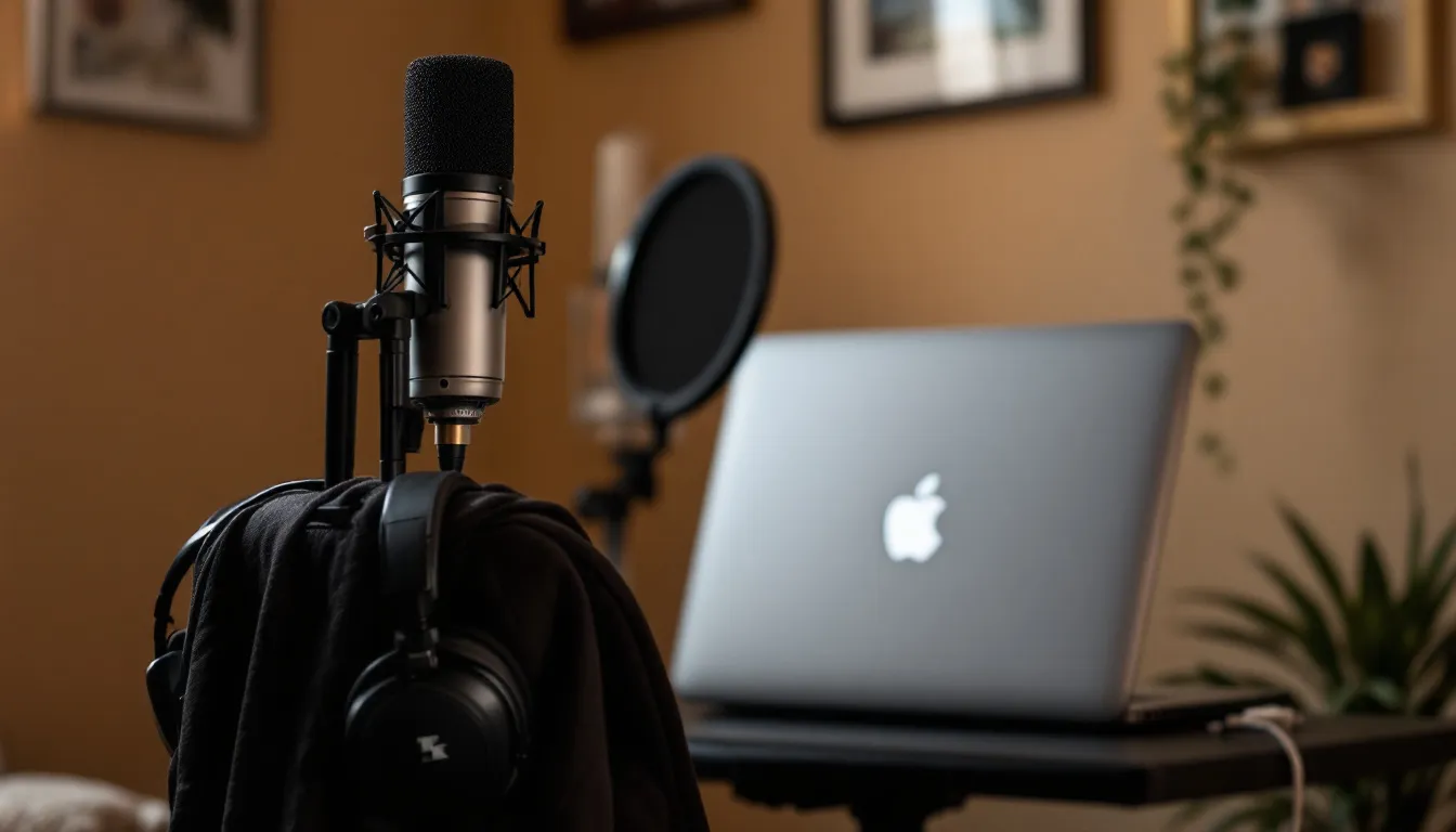 microphone with laptop in home studio